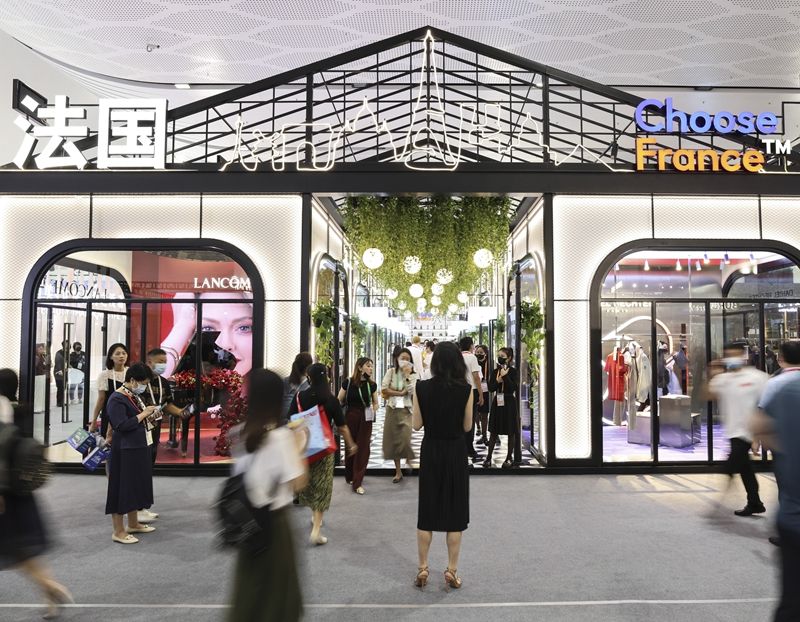 這是2022年7月26日在第二屆中國(guó)國(guó)際消費(fèi)品博覽會(huì)上拍攝的法國(guó)國(guó)家館。新華社記者 張麗蕓 攝